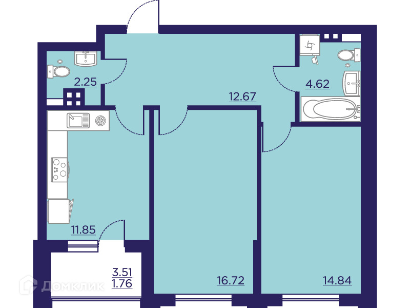 - Общая площадь: 64.71 м²