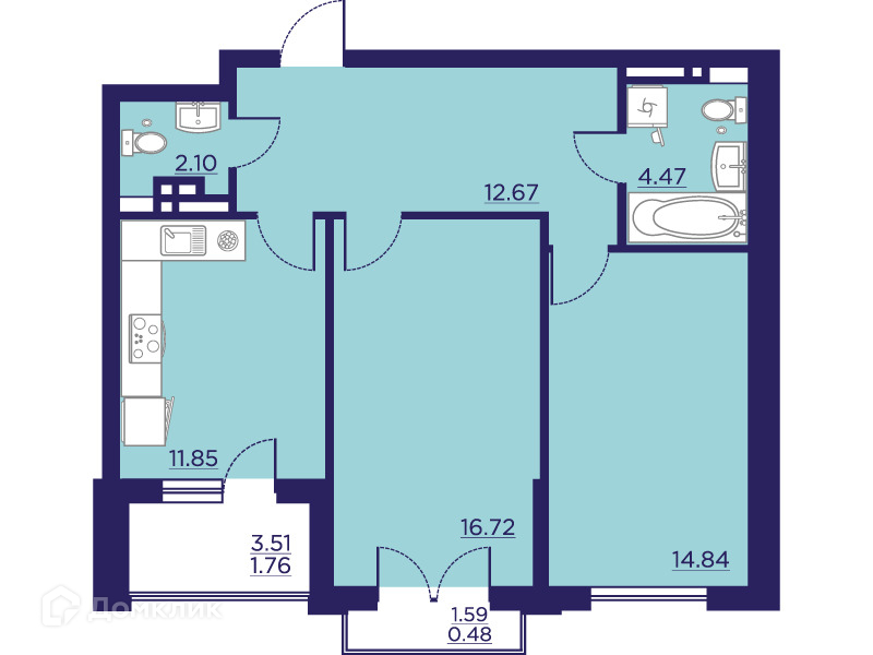 - Общая площадь: 64.89 м²