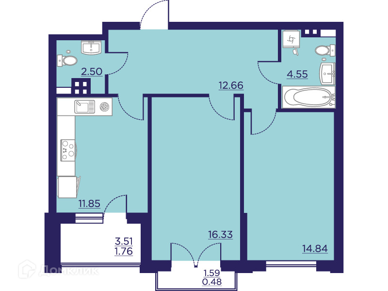 - Количество комнат: 2-комнатная квартира