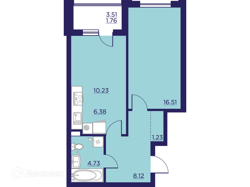 - Общая площадь: 48.96 м²