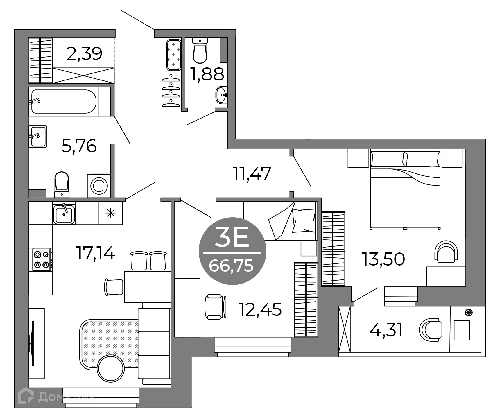 Доступна к покупке 2-комнатная квартира в новом жилом комплексе "ЖК Галилей" 🏢. Квартира расположена на 1-м этаже 26-этажного дома. Прекрасный выбор для инвестиций.