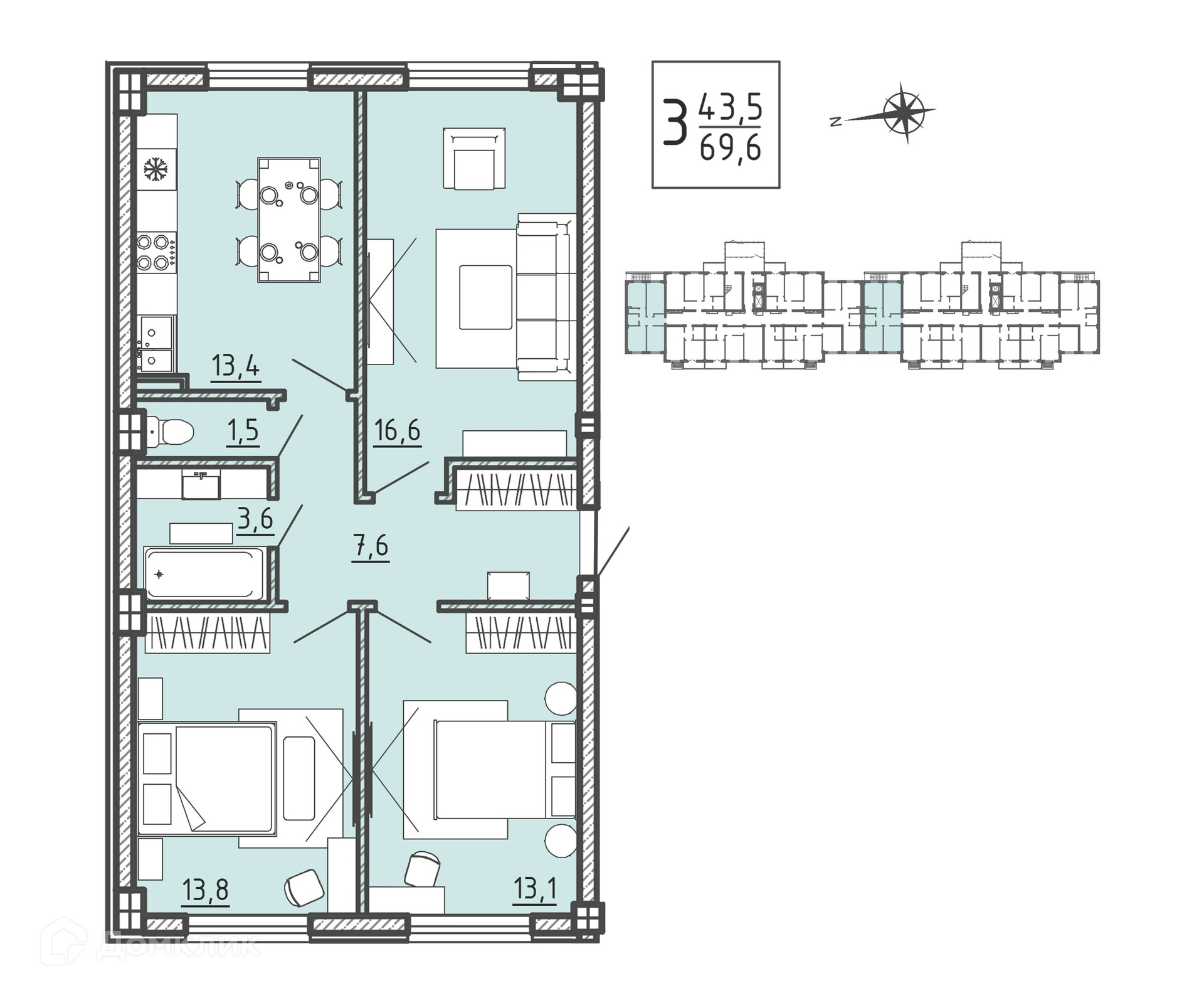 Доступна к покупке 3-комнатная квартира в новом жилом комплексе "ЖК "Ю"" 🏢. Квартира расположена на 1-м этаже 16-этажного дома. Отличный вариант для инвестиций.