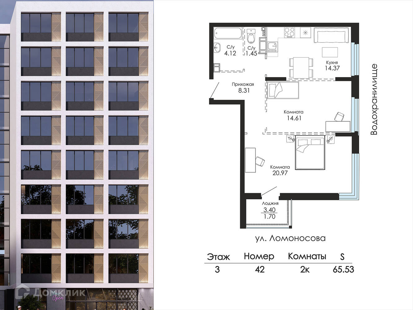 Планировка 2 комн. в ЖК Glinki (Глинки) парк