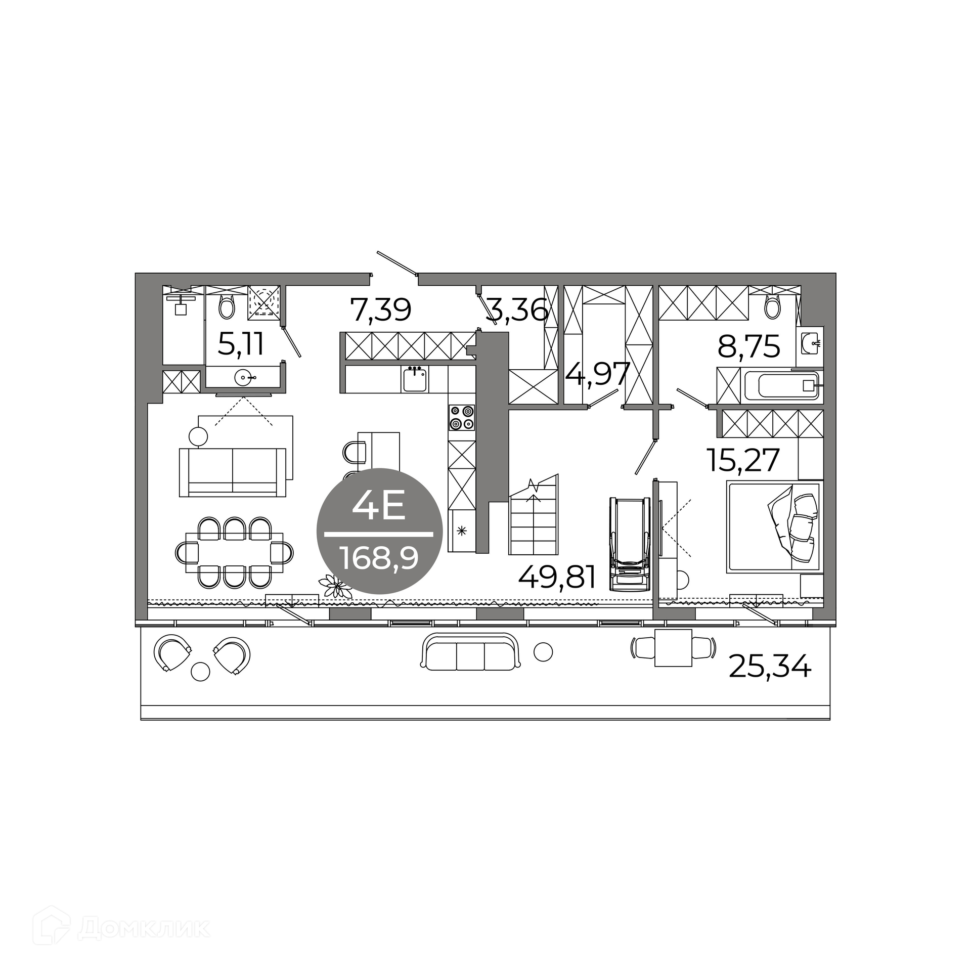 - Общая площадь: 168.9 м²