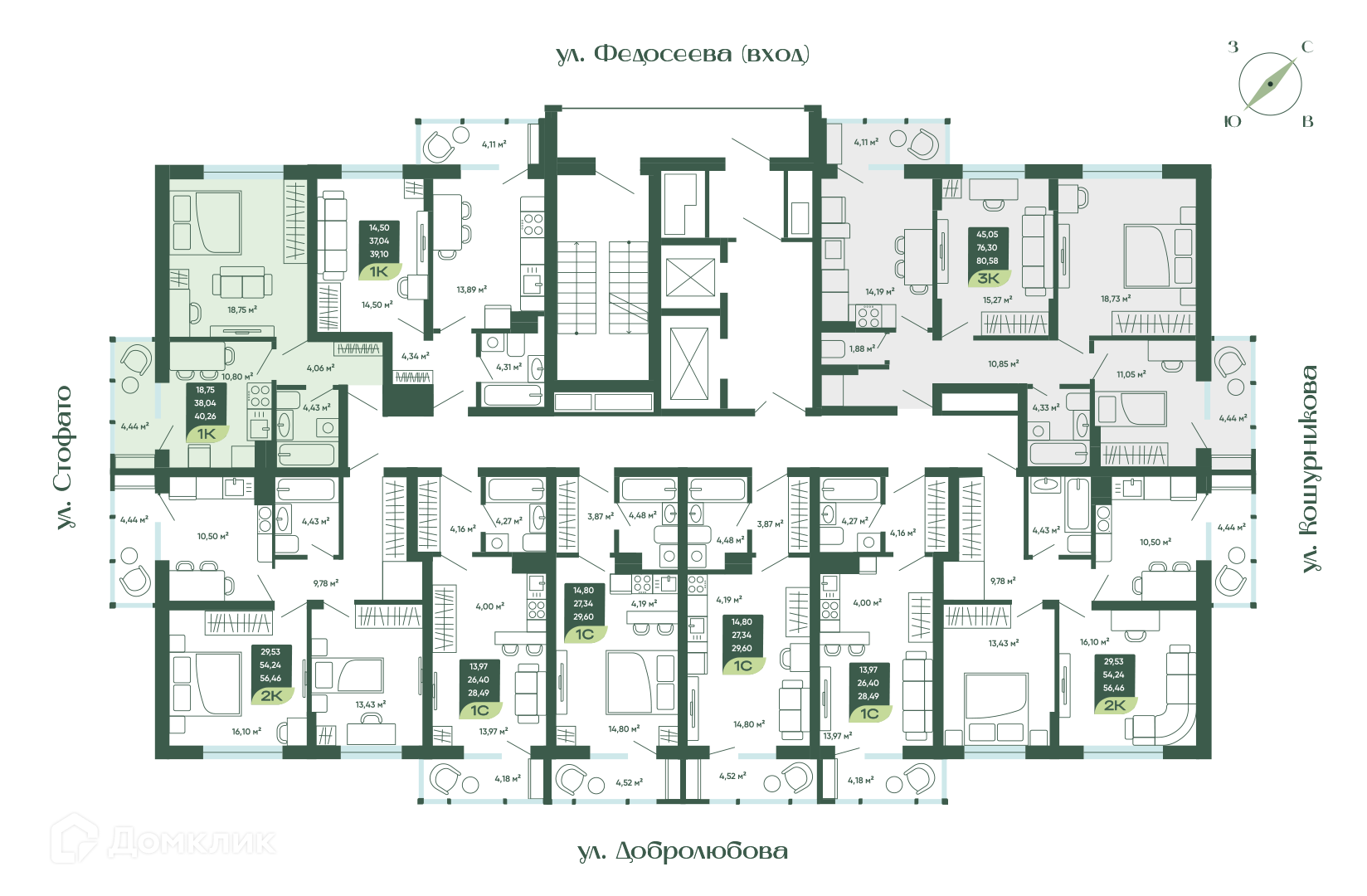 Площади квартир