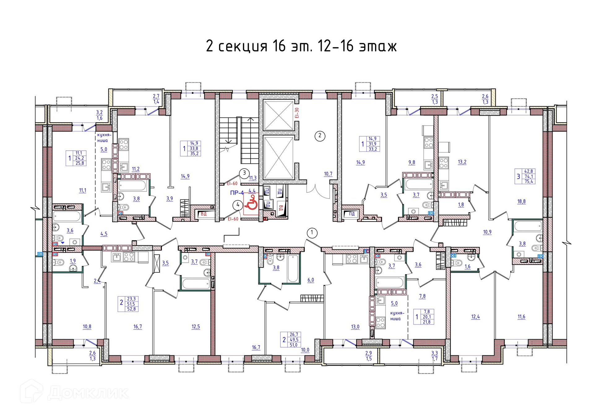 Площади квартир