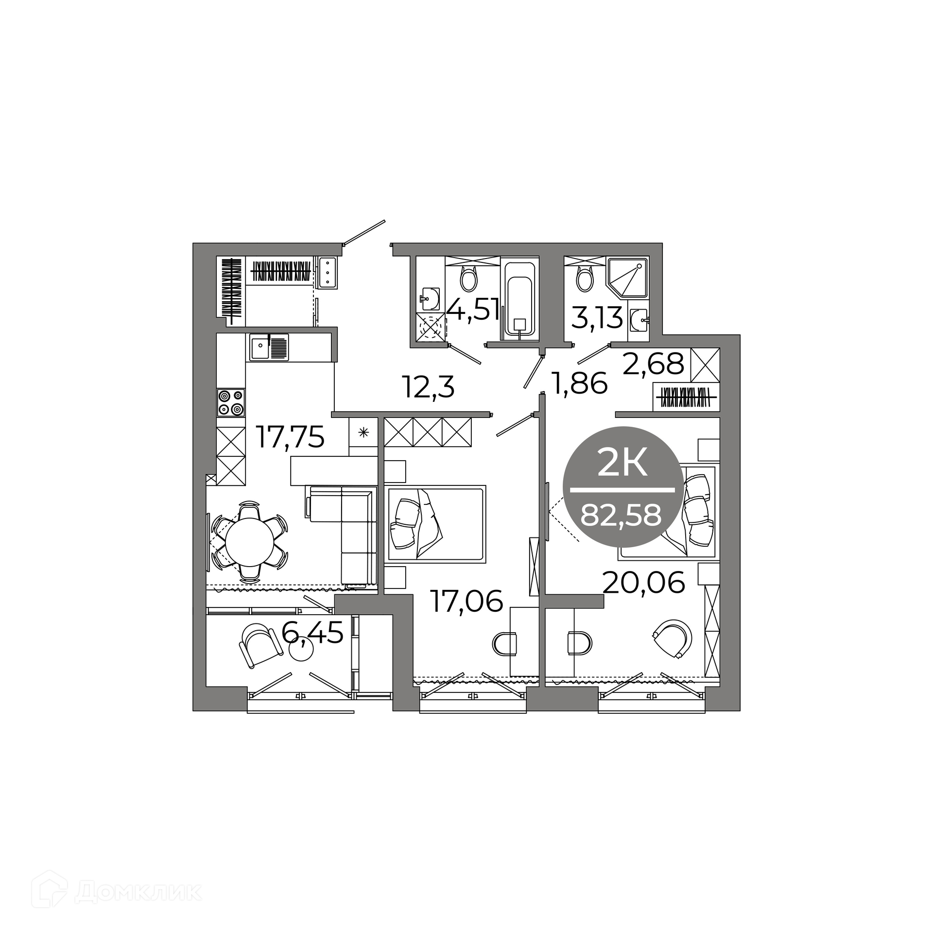 - Общая площадь: 82.58 м²