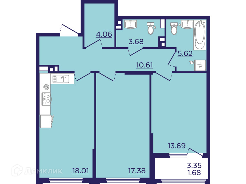 - ✅ Кухня: - м² — место для кулинарных шедевров.