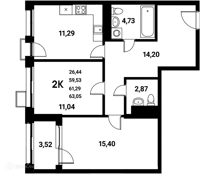 Площади квартир