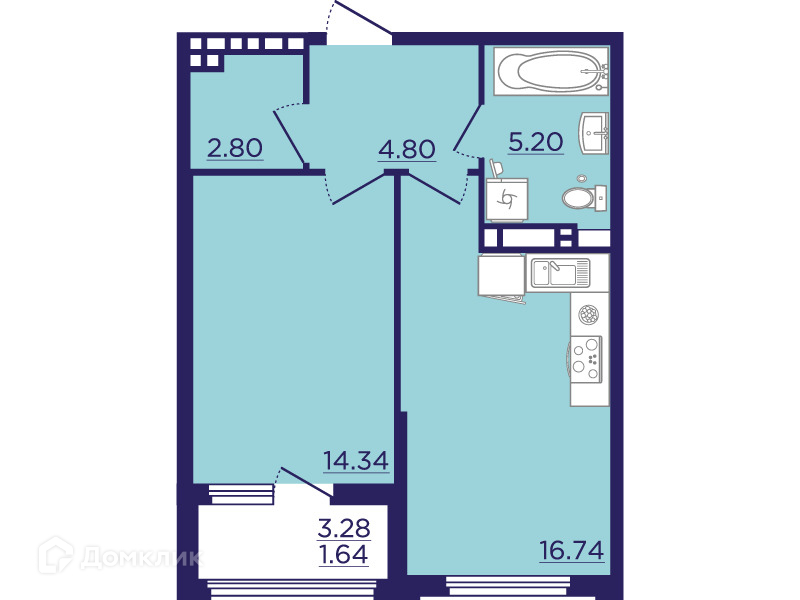 - Жилая площадь: 14.34 м²