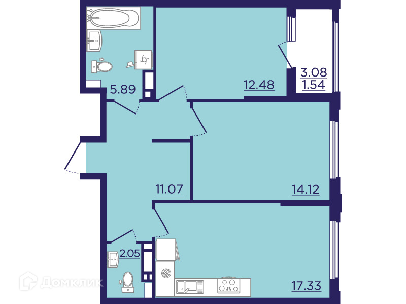 - Общая площадь: 64.48 м²