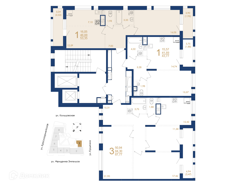 - Общая площадь: 53.35 м²