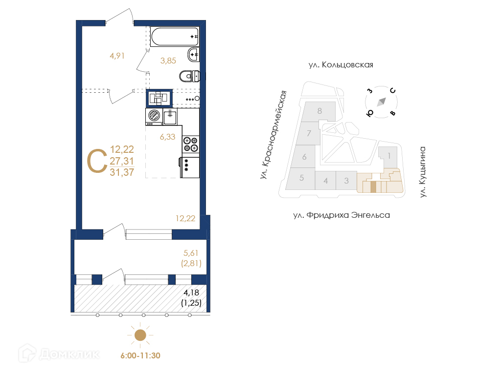 Планировка 2 комн. в ЖК Жилой дом по ул. Фридриха Энгельса