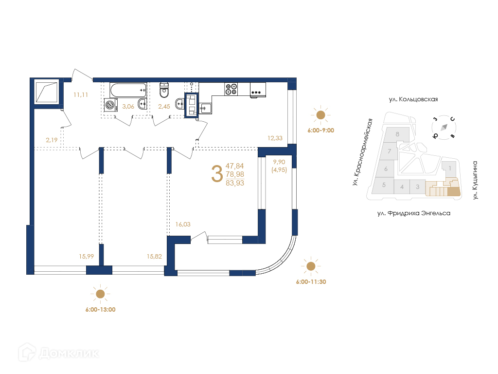 Доступна к покупке 3-комнатная квартира в востребованном жилом комплексе "ЖК Жилой дом по ул. Фридриха Энгельса" 🏢.