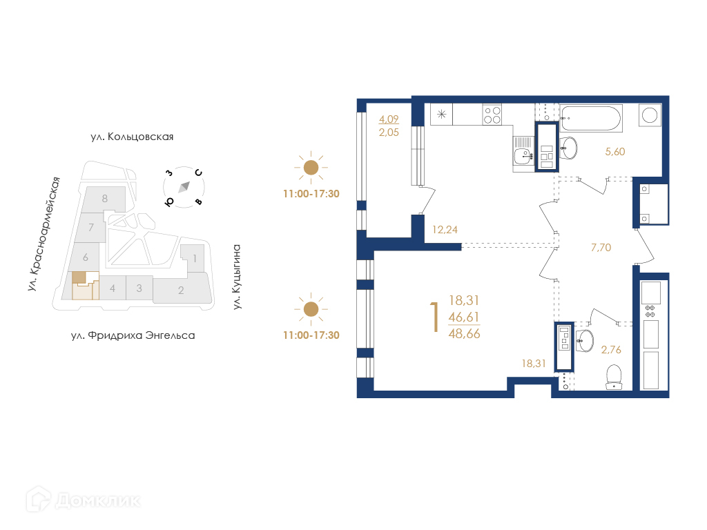 - ✅ Общая площадь: 48.66 м².