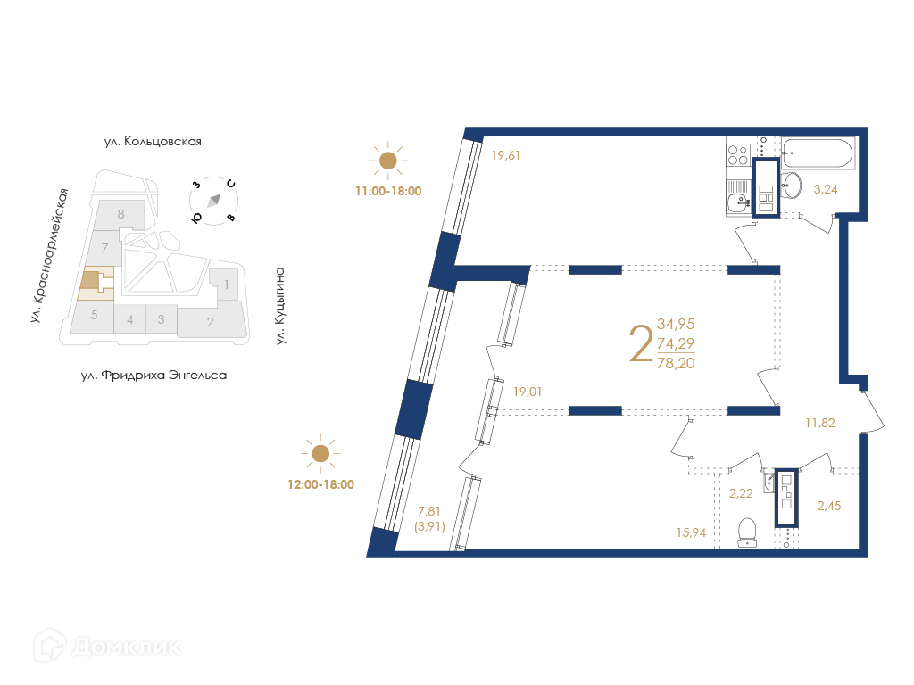 - Общая площадь: 78.2 м²