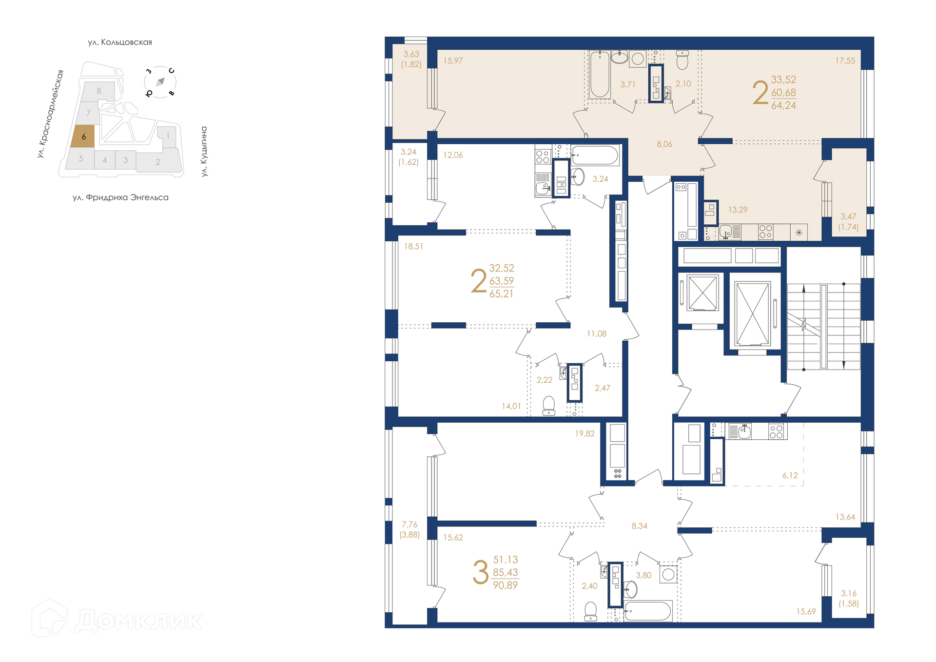 - Общая площадь: 64.24 м²