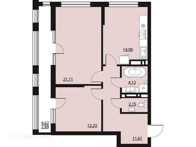 Планировка 2 комн. в ЖК "Бунин"