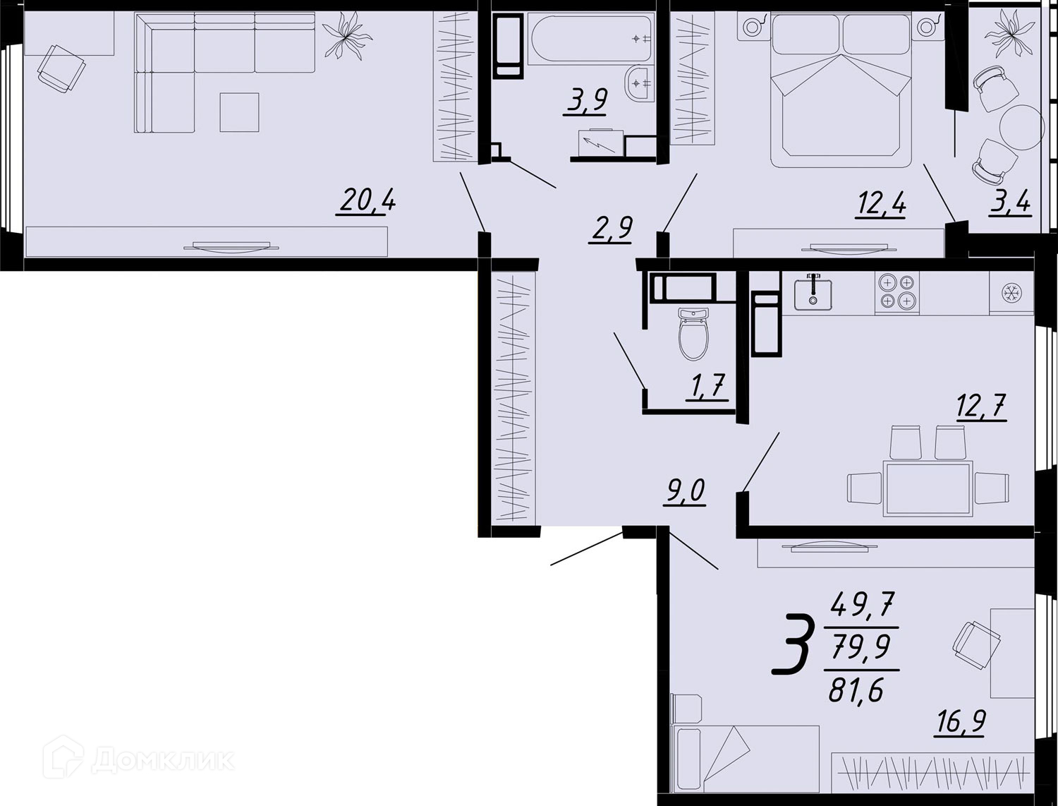- Жилая площадь: 79.9 м²