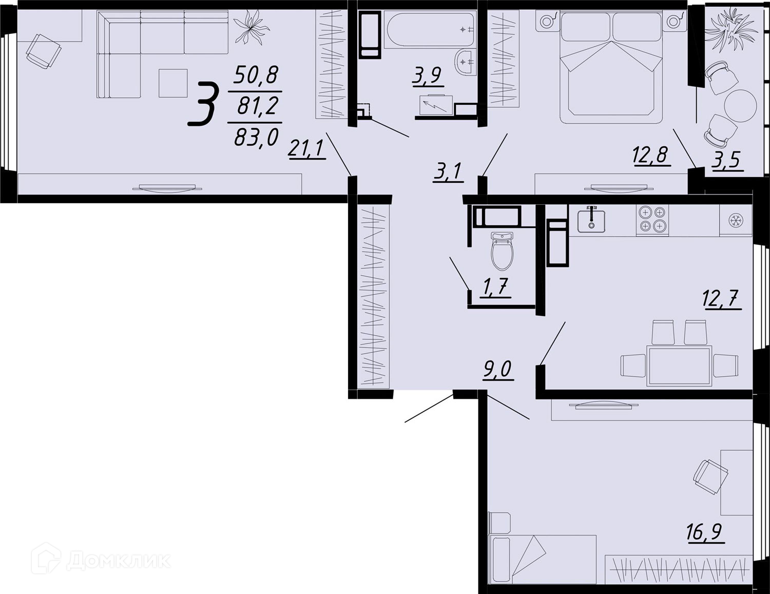 - ✅ Светлая жилая площадь: 81.3 м².