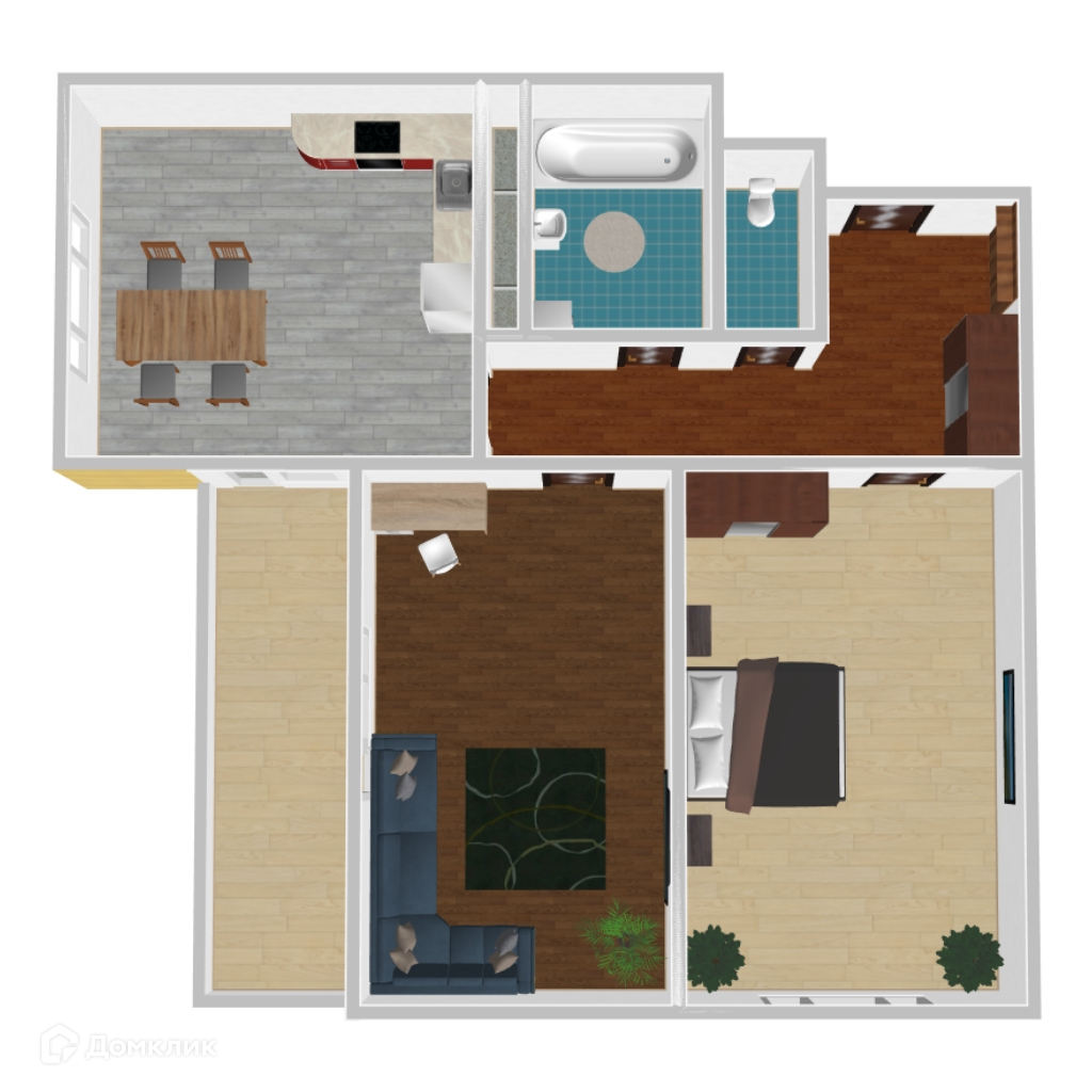 - ✅ Кухня: 12.43 м² — эргономичное пространство.