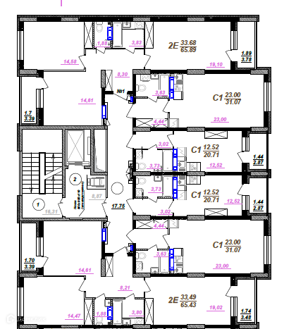 Планировка 2 комн. в ЖК Победа поз. 3