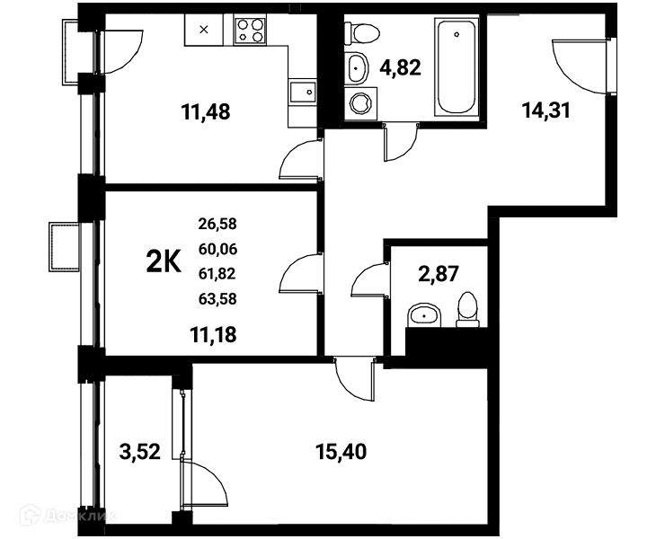 Площади квартир