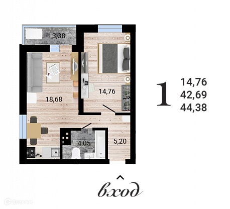 - ✅ Кухня: 18.68 м² — идеальна для семейных ужинов.