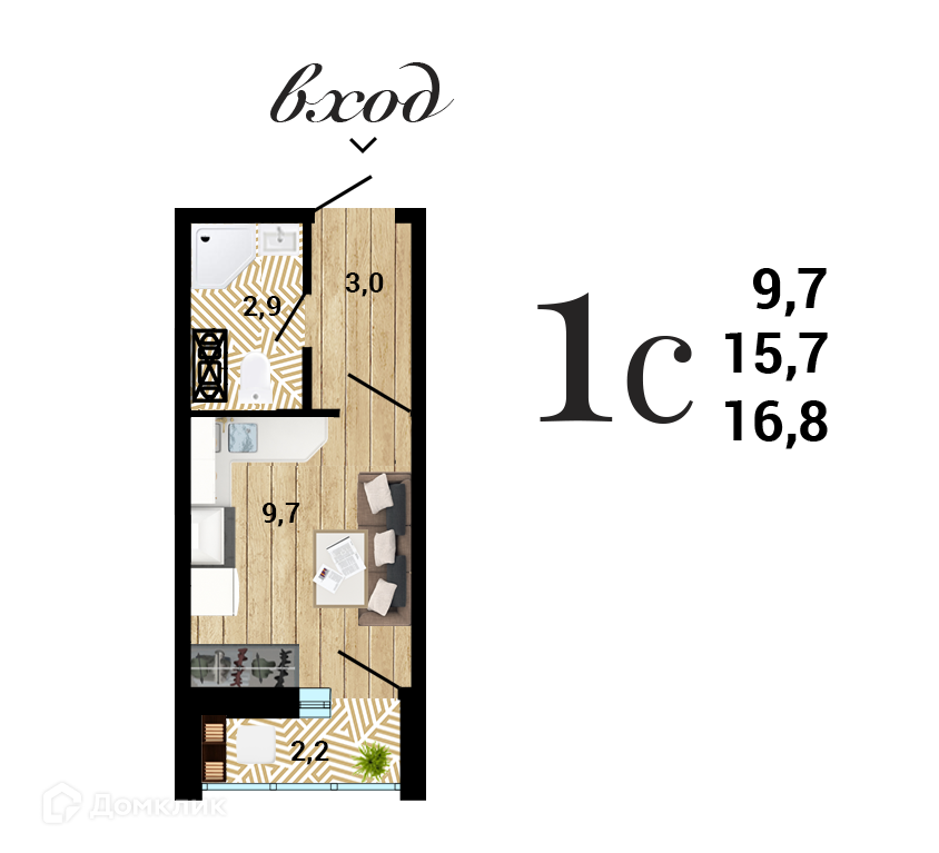 Планировка 1 комн. в ЖК "8 Элемент"