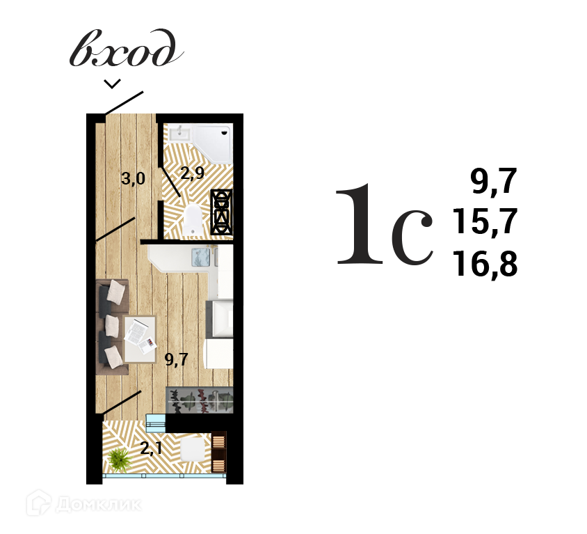 Планировка Студия в ЖК "8 Элемент"