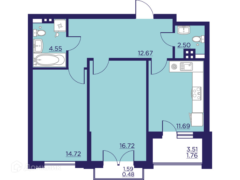 - Количество комнат: 2-комнатная квартира
