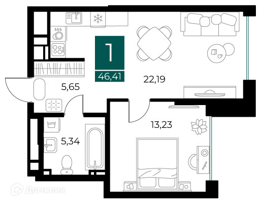 • Площадь - 46.41 м²