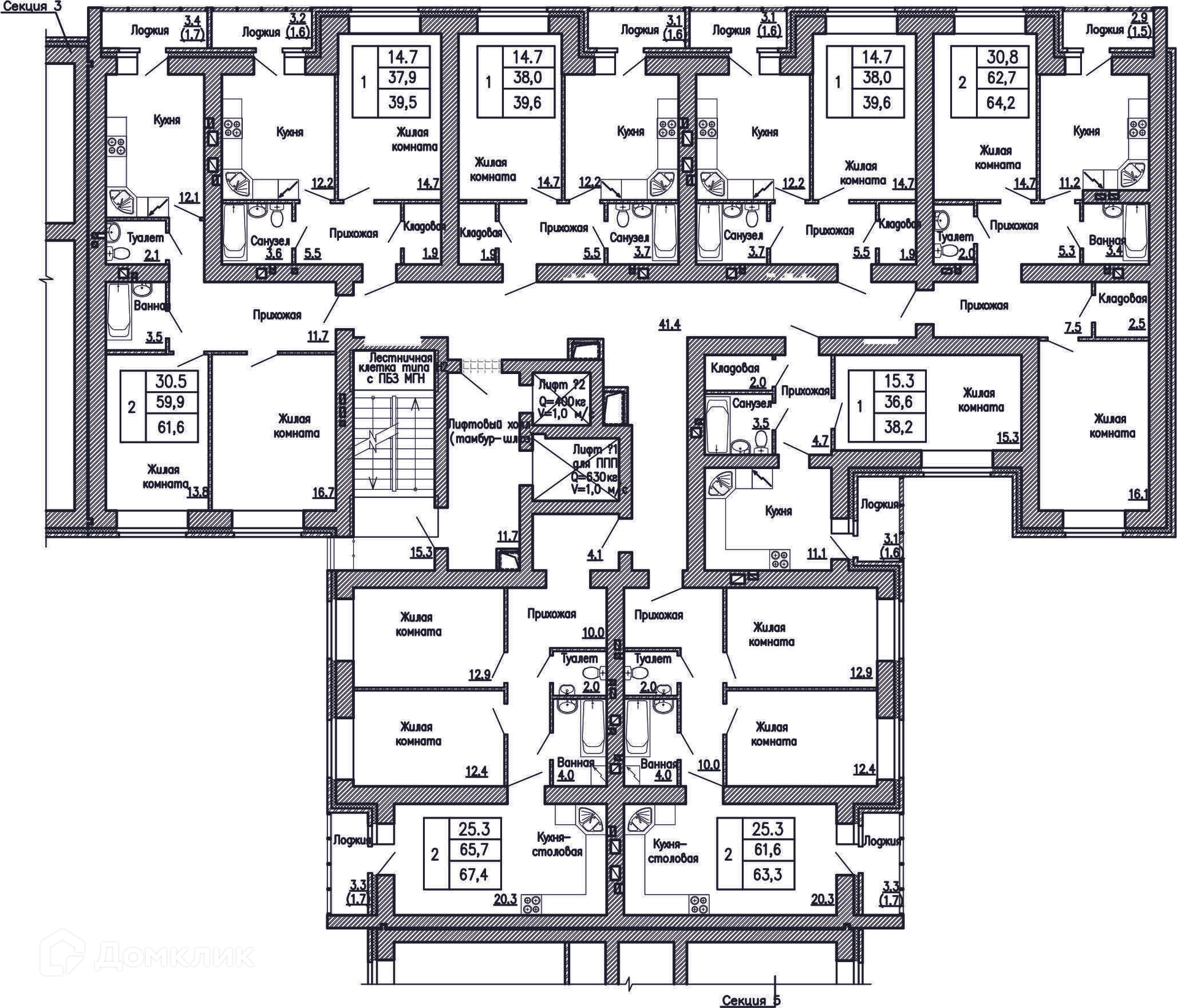 Площади квартир