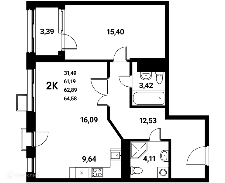Площади квартир