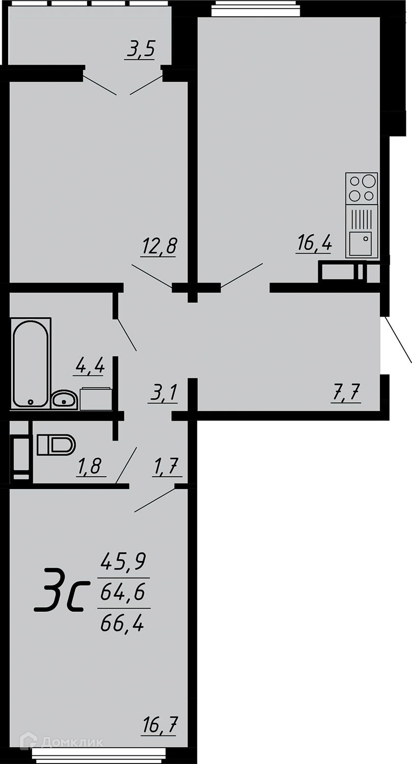 - Общая площадь: 65.9 м²