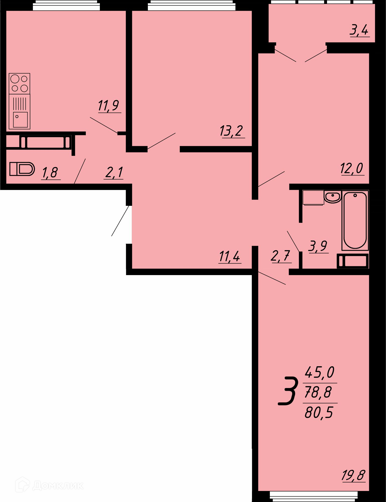 - Общая площадь: 80.2 м²