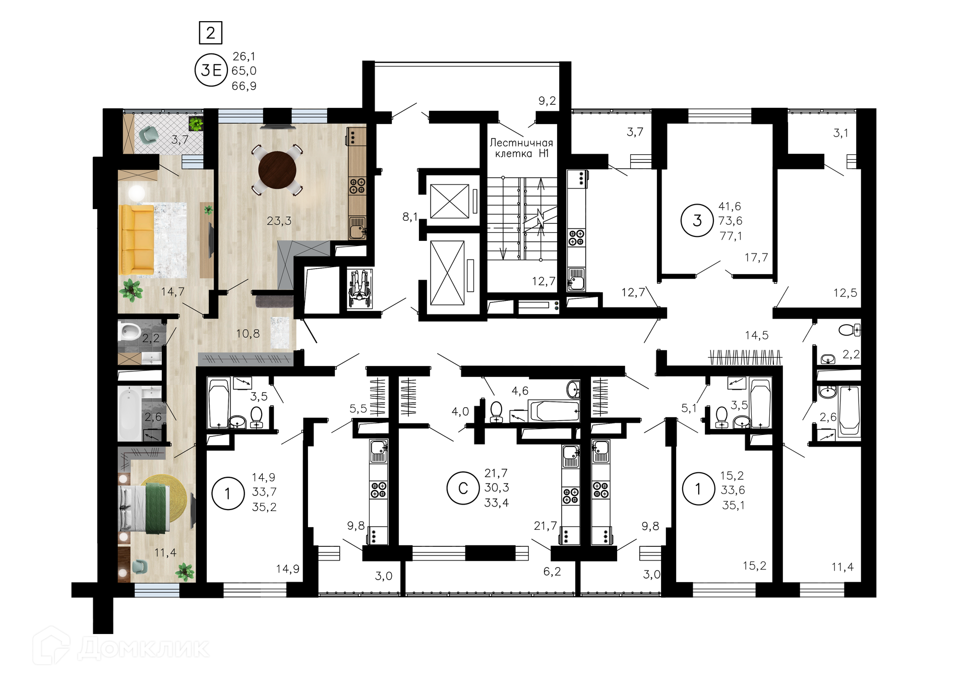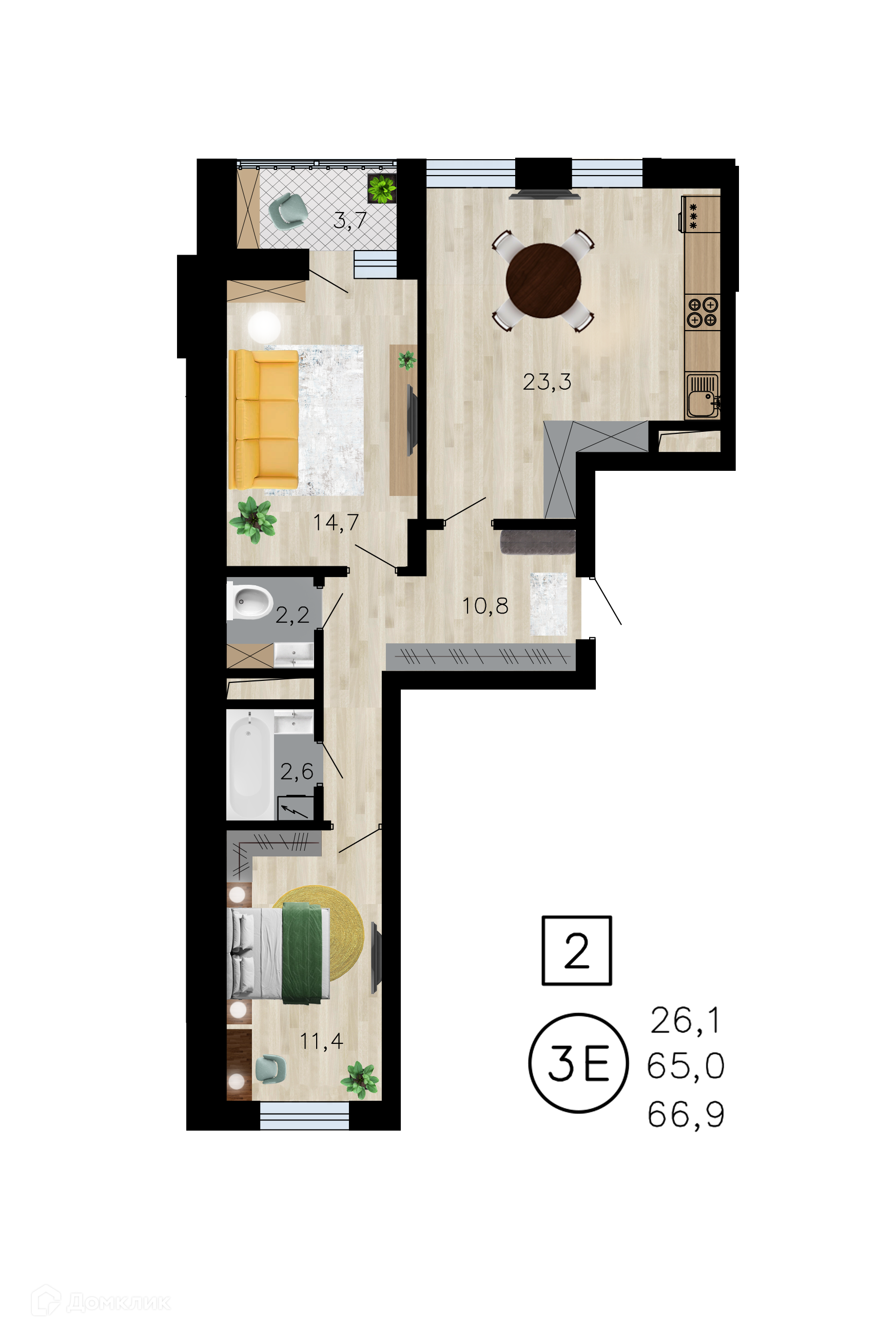 - ✅ Кухня: 23.3 м² — идеальна для семейных ужинов.