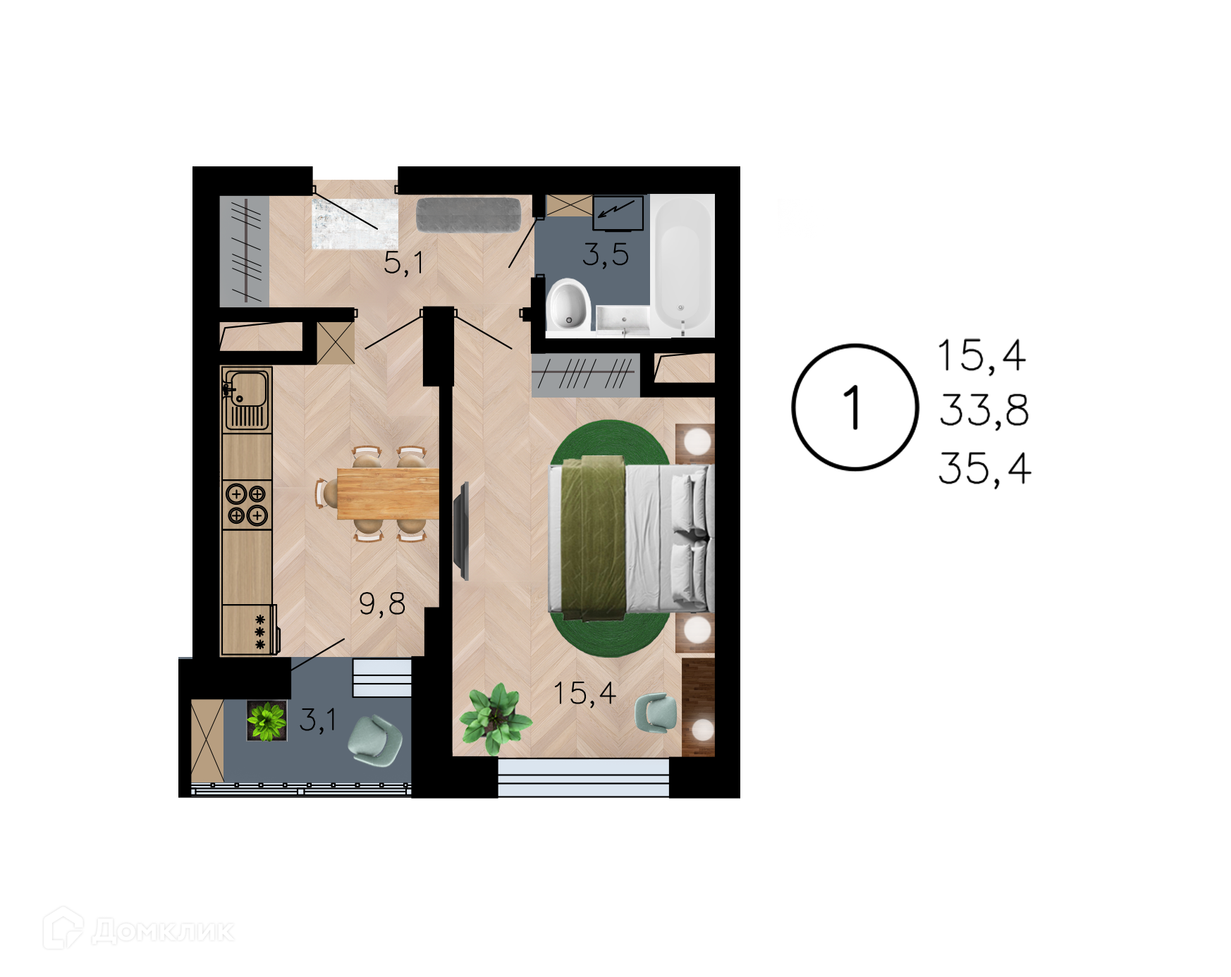 33.4 м²