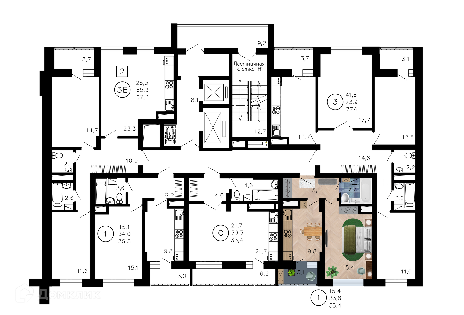 33.4 - 77.9 м²