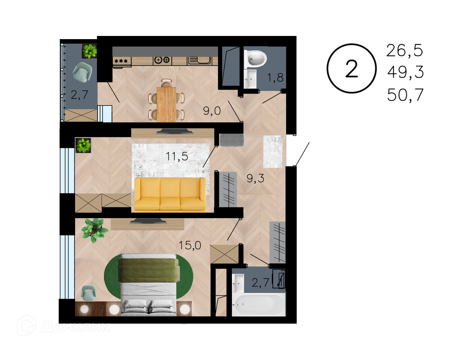 Планировка 1 комн. в ЖК Лето