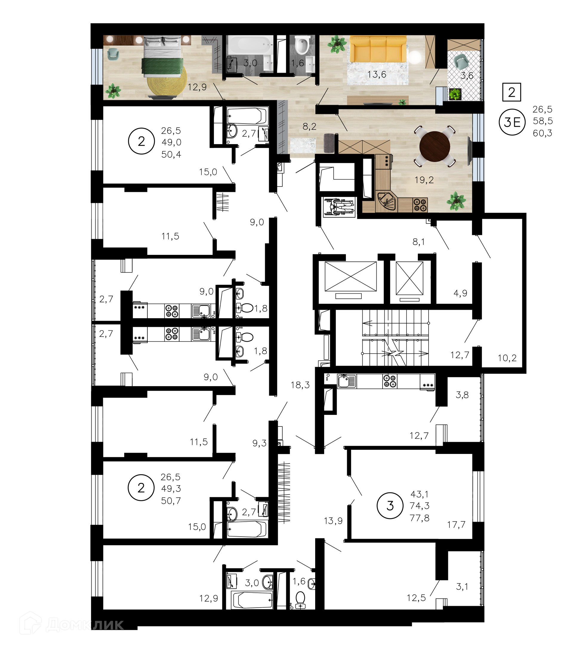 - ✅ Просторная жилая площадь: 26.5 м².