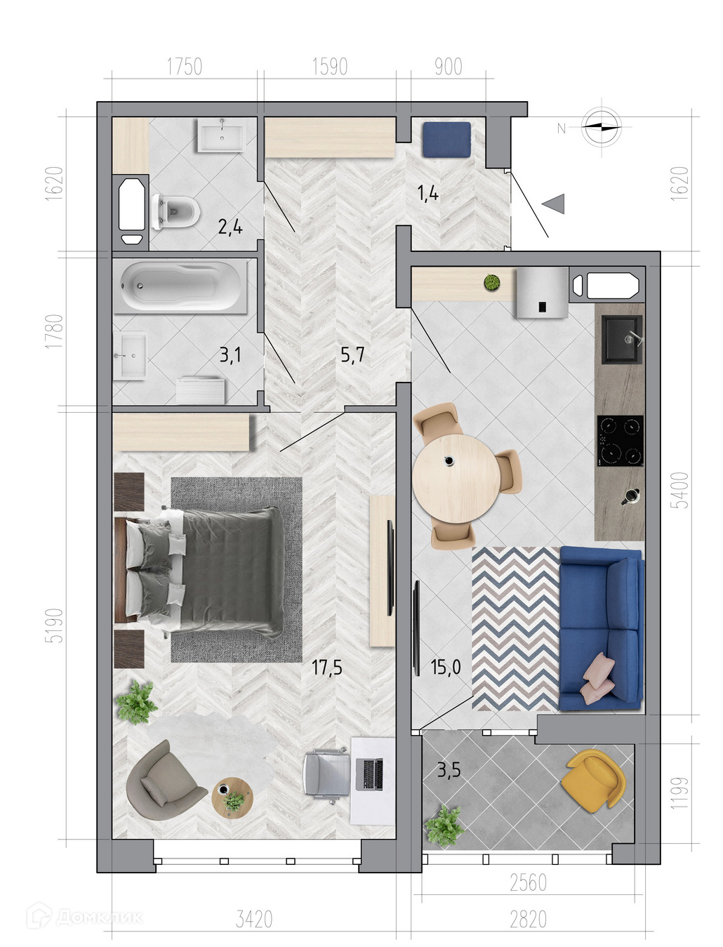 - ✅ Уютная жилая площадь: 17.5 м².