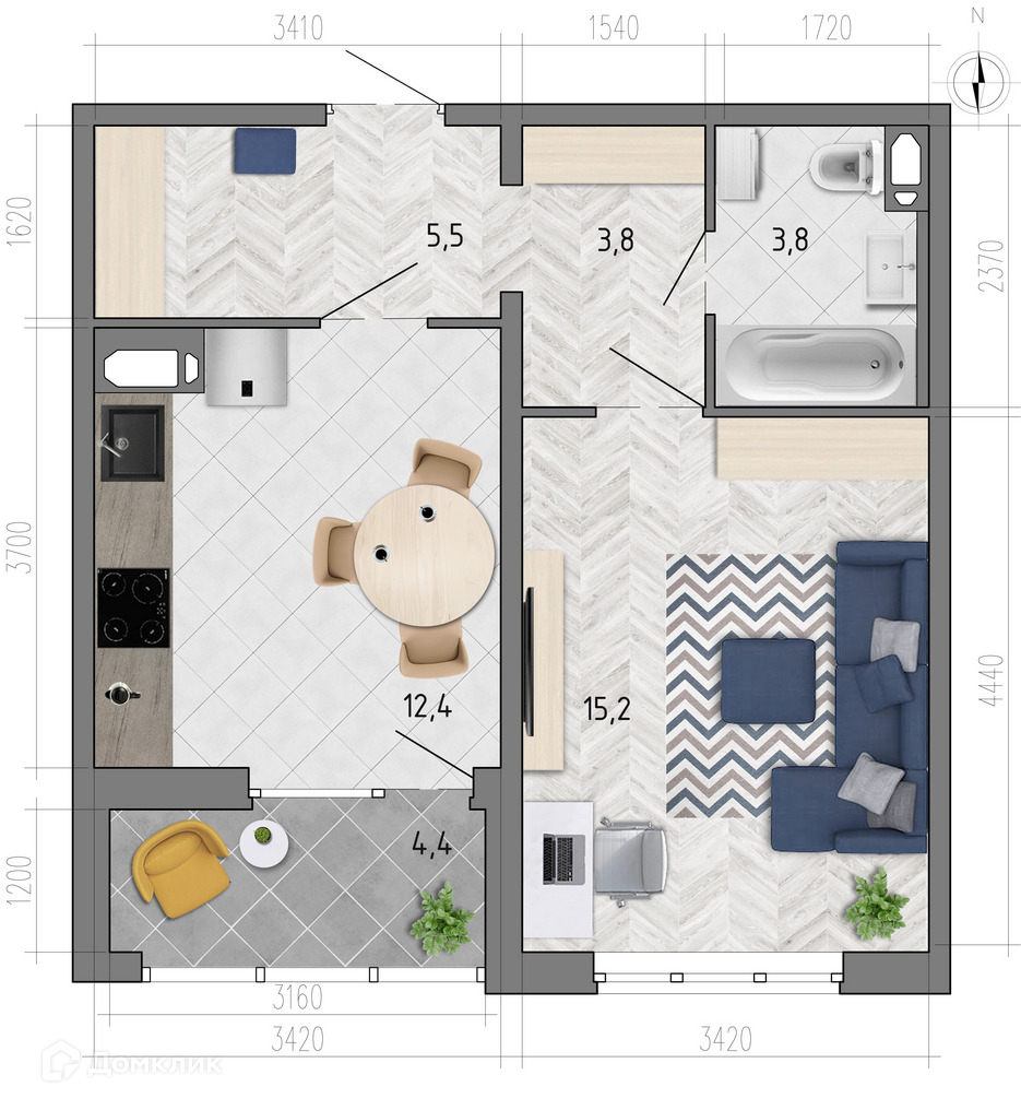 - ✅ Кухня: 12.4 м² — место для кулинарных шедевров.