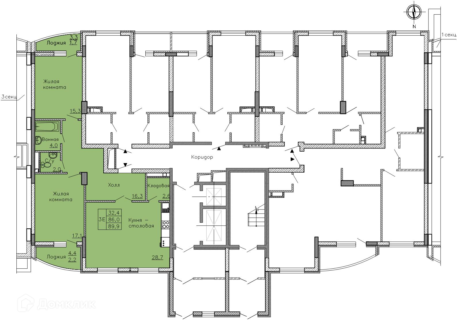 - Количество комнат: 3-комнатная квартира