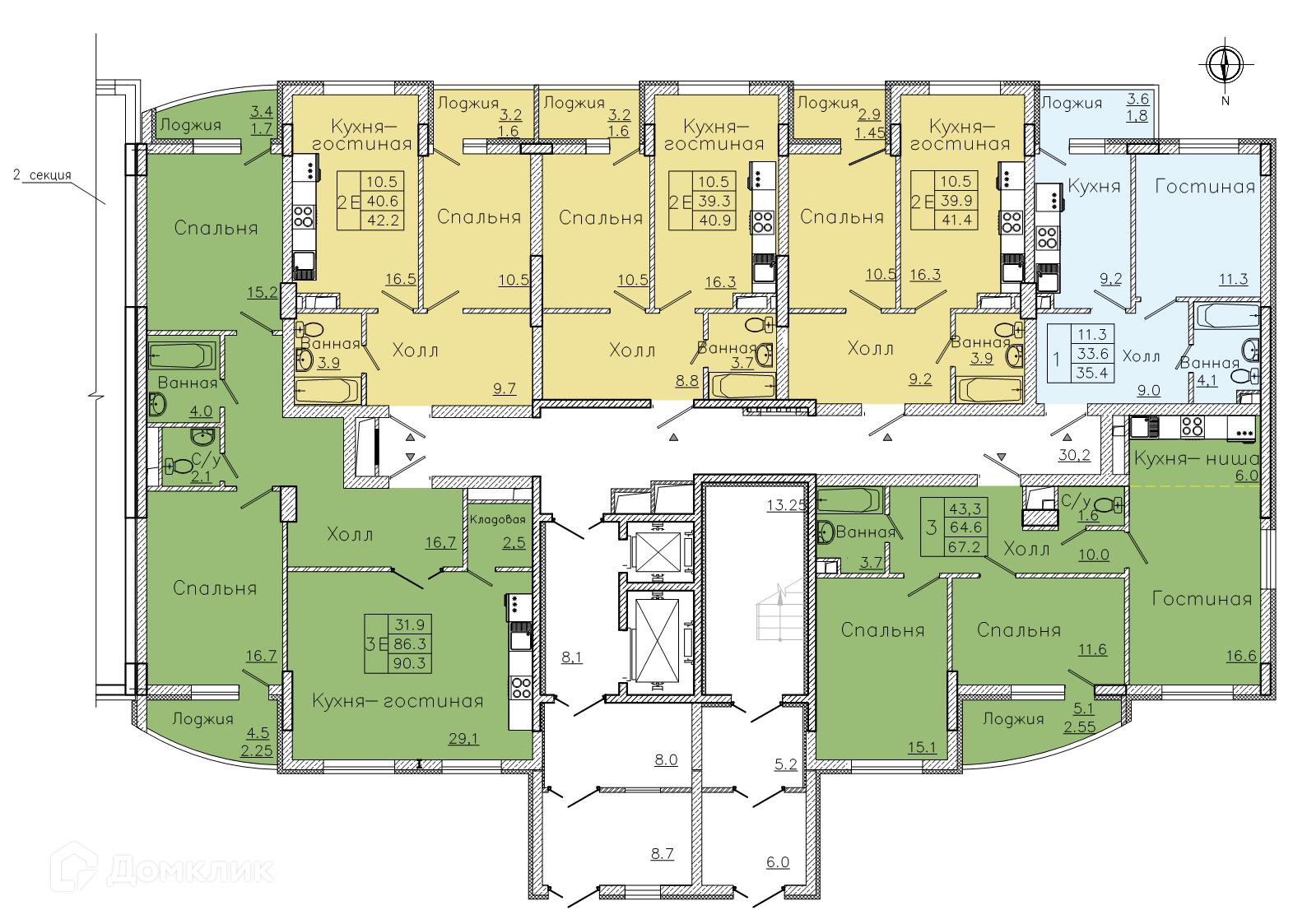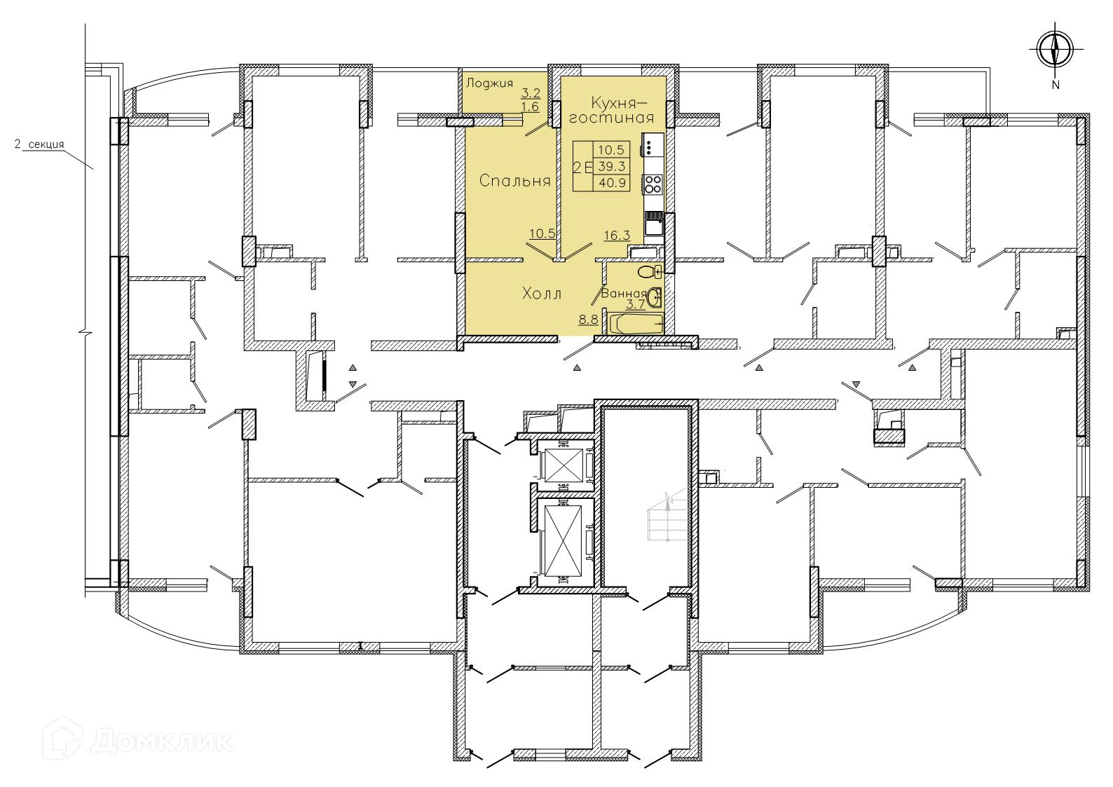 - Общая площадь: 40.9 м²