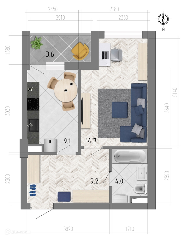 - ✅ Кухня: 9 м² — место для кулинарных шедевров.