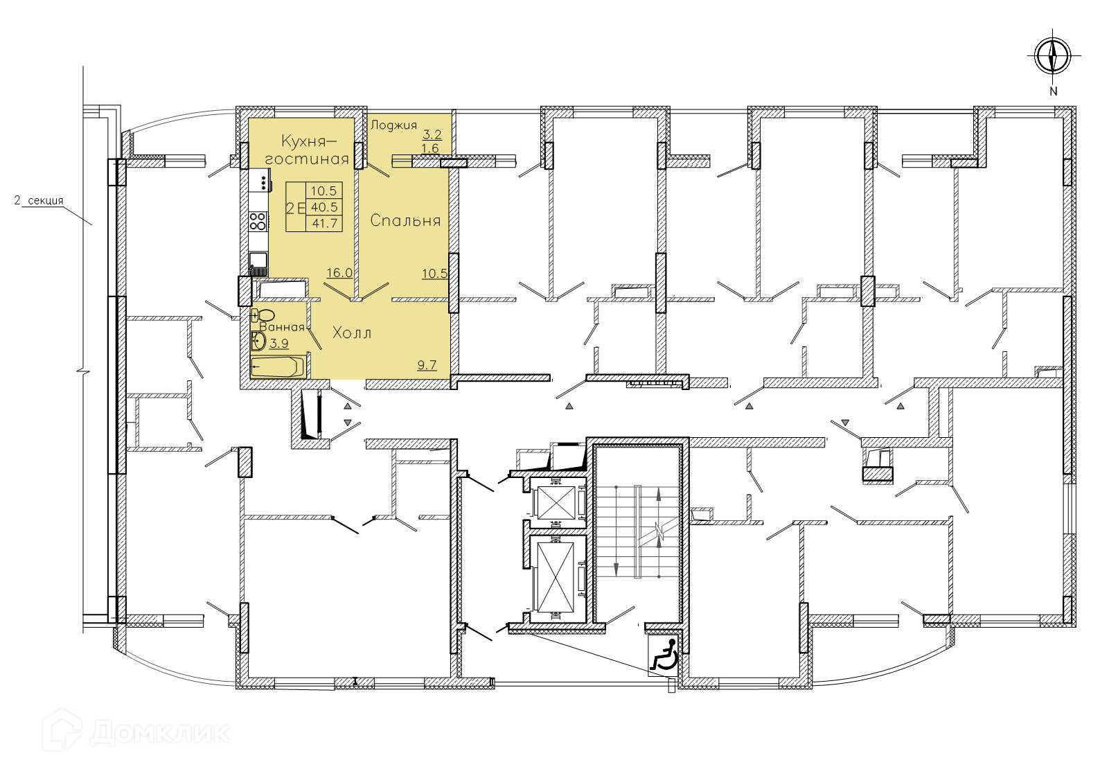 - Общая площадь: 41.7 м²