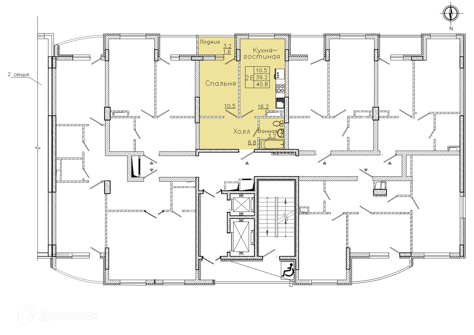 Квартира расположена на 16-м этаже 19-этажного дома.