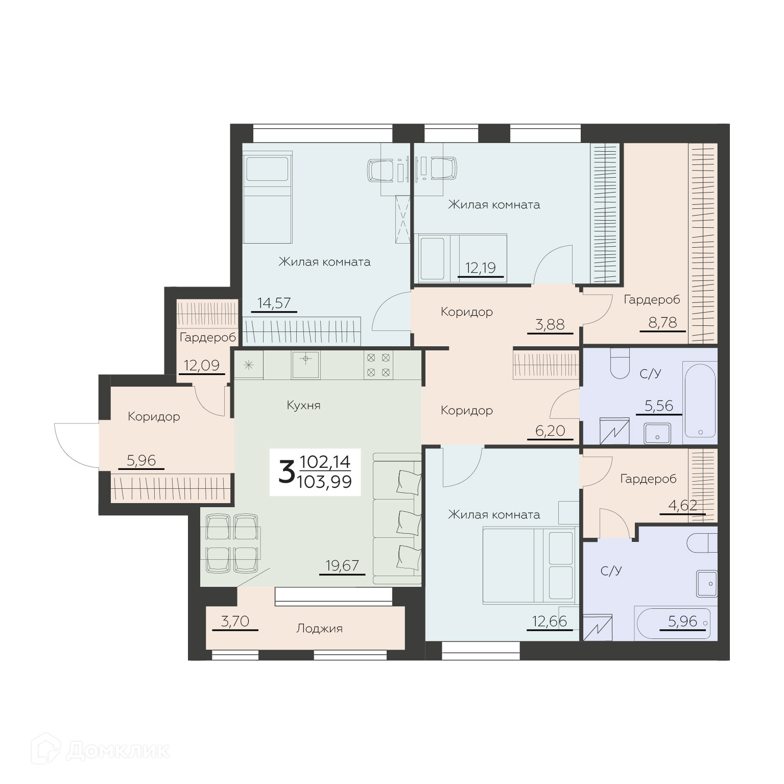 - Общая площадь: 103.99 м²