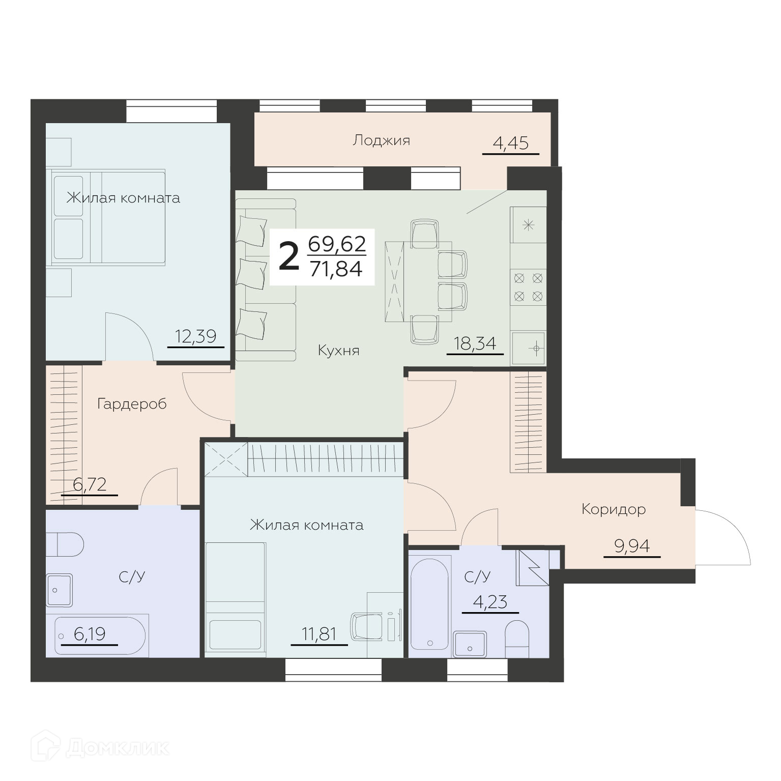 Планировка 2 комн. в ЖК Заря